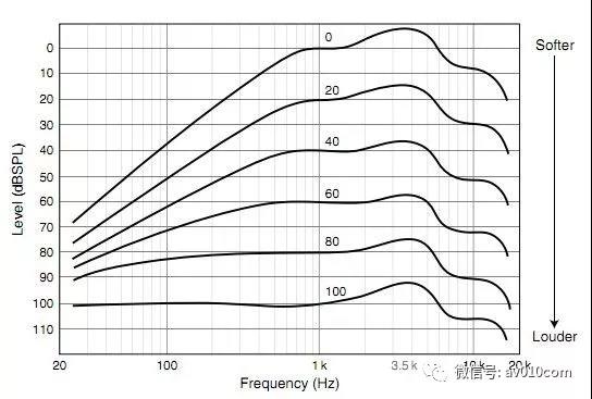 3.響度越大,我們對信号頻率的感知越爲平直,即響度越大,我們的耳朵越容易感知信号的低頻及高頻。