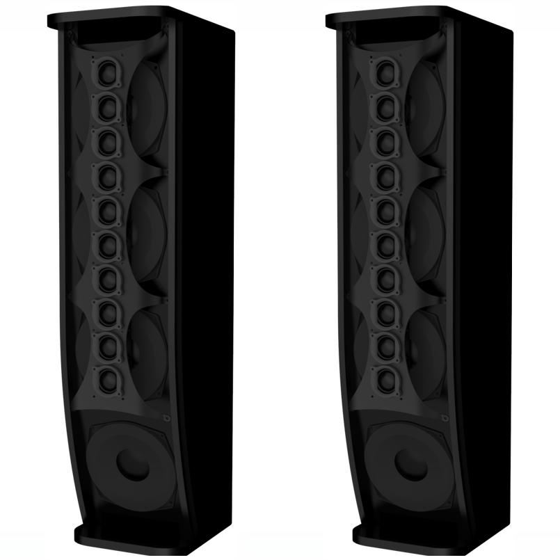 其可以提供清晰透明的語音還原度和精準的投射角度。同樣採(cǎi)用流線型設計,外形美觀實用,音質優美動聽。設計採(cǎi)用兩分頻,高、低音模組結構。由4個5.5英寸的低音單元進行垂直堆疊,上下導向分流,擁有更大的低頻動态。高音採(cǎi)用10個1英寸單元配以鋁合金支架組件,構成高頻波束控制模組,具有更細膩有層次感的高頻表現。擁有非對稱波束投射指向技術及恒定波寬技術,具備(bèi)特有的聲學性能優勢。