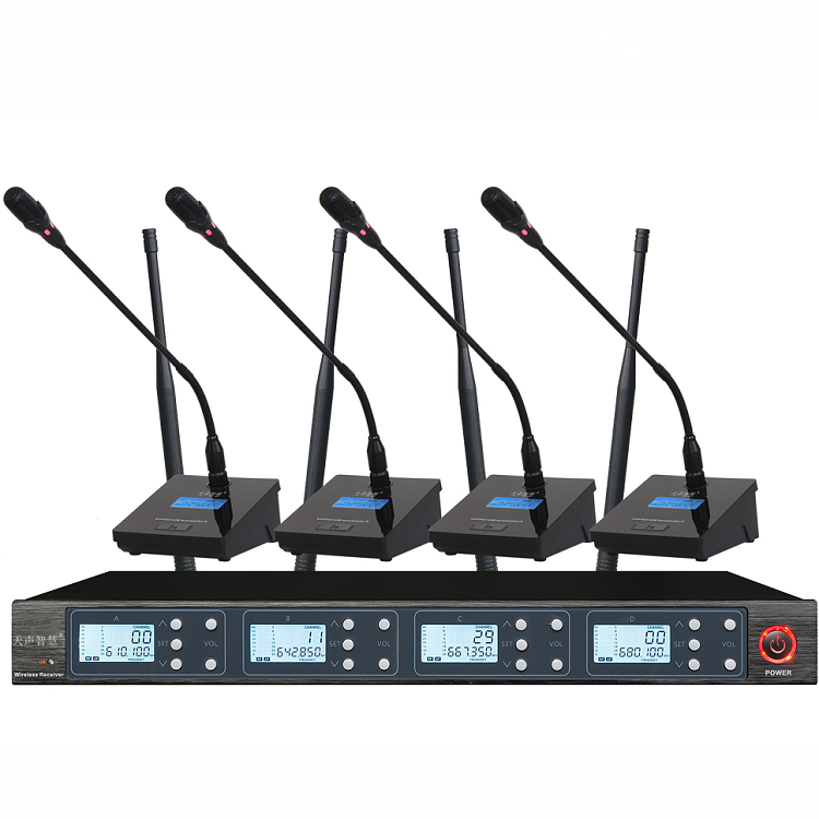 産品選用瞭(le)超指向強電容式音頭,具有極優秀的音質和頻響。次用瞭(le)鎖式牢固接插分離結構,確(què)保瞭(le)高可靠的穩定性能。獨立設計新型底座,是要求極高的高級會議工程的理想設備。頻率響應寬廣,音質清晰透明,噪音低,話筒ON/OFF超長壽命。話筒開啓時,音頭紅色工作指示燈發亮。鵝頸與底座可分開式,适用於(yú)大、中、小型會議、公衆傳播、上課、演講等場(chǎng)合。ID碼(mǎ)辨别 ,不容易受到外界幹(gàn)擾與影響。使用UHF640~690MHz頻段,應用PLL頻率合成鎖相環(huán)技術,頻率可調(diào),可同時使用5套,不受幹擾,。集成中央處理器CPU的總控制,配合數字液晶界面顯示,操作方便,性能出衆。採(cǎi)用多級窄帶高頻及中頻選頻濾波,充分消除幹擾信号。採(cǎi)用音頻壓縮擴展技術,噪音大大減少,動态範圍加大。設有回輸嘯叫抑制減弱功能,能有效減少回輸嘯叫。接收機採(cǎi)用多級高頻放大,具有極高的靈敏度。多重噪音監測(cè)電路,特設單音鎖定TONE-LOCKED系統,使之具有無與倫比的抗幹(gàn)擾特性。空闊(kuò)最大使用距離100米以上,理想空間使用距離50米。