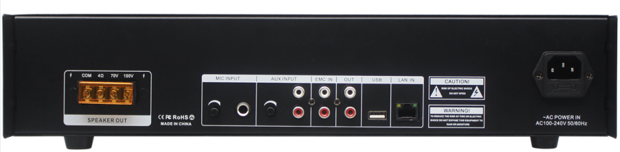 鋁質2U黑色拉絲面闆機櫃式安裝,採用Linux系統,DSP軟件音頻解碼方案,實現網絡(luò)化傳(chuán)輸16位立體聲CD音質的音頻信号,内置嵌入式網絡(luò)音頻解碼模塊(kuài),支持TCP/IP、UDP、RTP協(xié)議,接收平台指令和音頻(pín)信号,支持平台遠程升級;遠程控制本地音量,本地音量控制器採(cǎi)用全密封式防塵(chén)工藝,永久防塵(chén)。15KVESD保護,内置網絡隔離防雷處(chù)理電路。採(cǎi)用D類數字功放電(diàn)路,适應寬(kuān)電(diàn)壓AC100V-240V供電(diàn),高效足功率輸出直接驅動(dòng)定壓70V-100V、定阻4-16Ω廣播揚聲器。