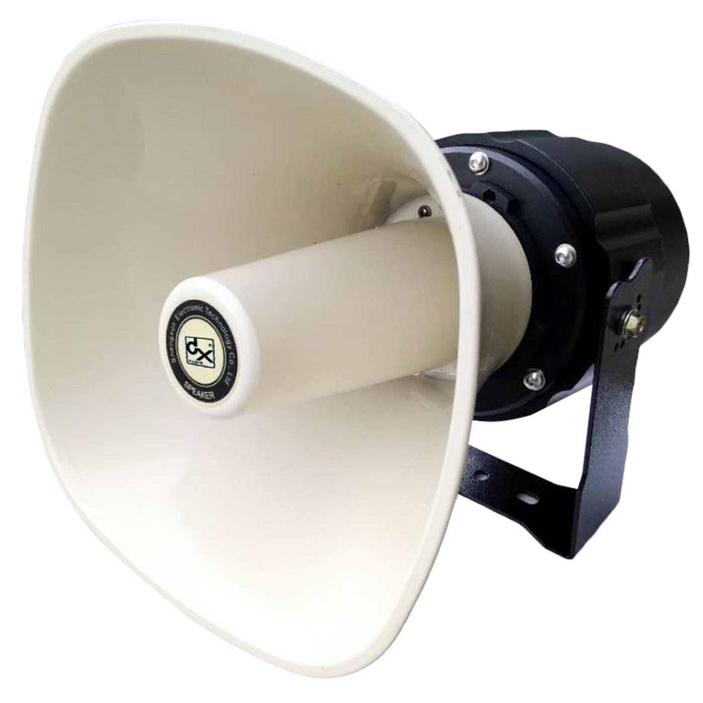 配有安裝支架,安裝便捷,适用於(yú)戶外遠程廣播和混響時間較長的大型場(chǎng)館,全天候設計,室内外均适宜,高清設計,語言清晰度強、聲音明亮,指向性尖銳,傳播距離遠,在空曠的野外1公裏處仍能聽得很清晰。